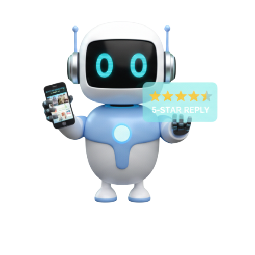 Monitors + responds to reviews, auto-requests 5-stars 24/7